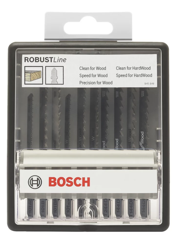 Popular selection of high quality wood jigsaw blades supplied in a case that allows a clear view of the products.