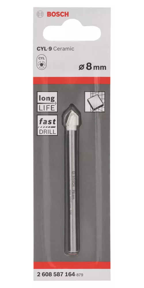 CYL-9 Ceramic Tile Drill Bit. Dry drilling without lubrication is possible, which makes working with this bit effortless and convenient. Simple flute-less design suitable for drilling through soft-to-medium hard tiles. Drill without impact at low speeds. Compatible with corded or cordless non-impact drills with a cylindrical shank system.
