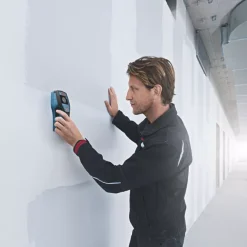 High performance, professional radar scanner complete with a dual power source. Precise centre finder with visual direction guidance. Spot measurement enables detection on extremely small surfaces. Operated using standard alkaline batteries, making this practical for outdoor use when there is no way to recharge a battery pack. Can detect objects including plastic water pipes, metals or live cables at material depths of up to 120mm. Audible and visual warning signals when objects are detected in the wall.