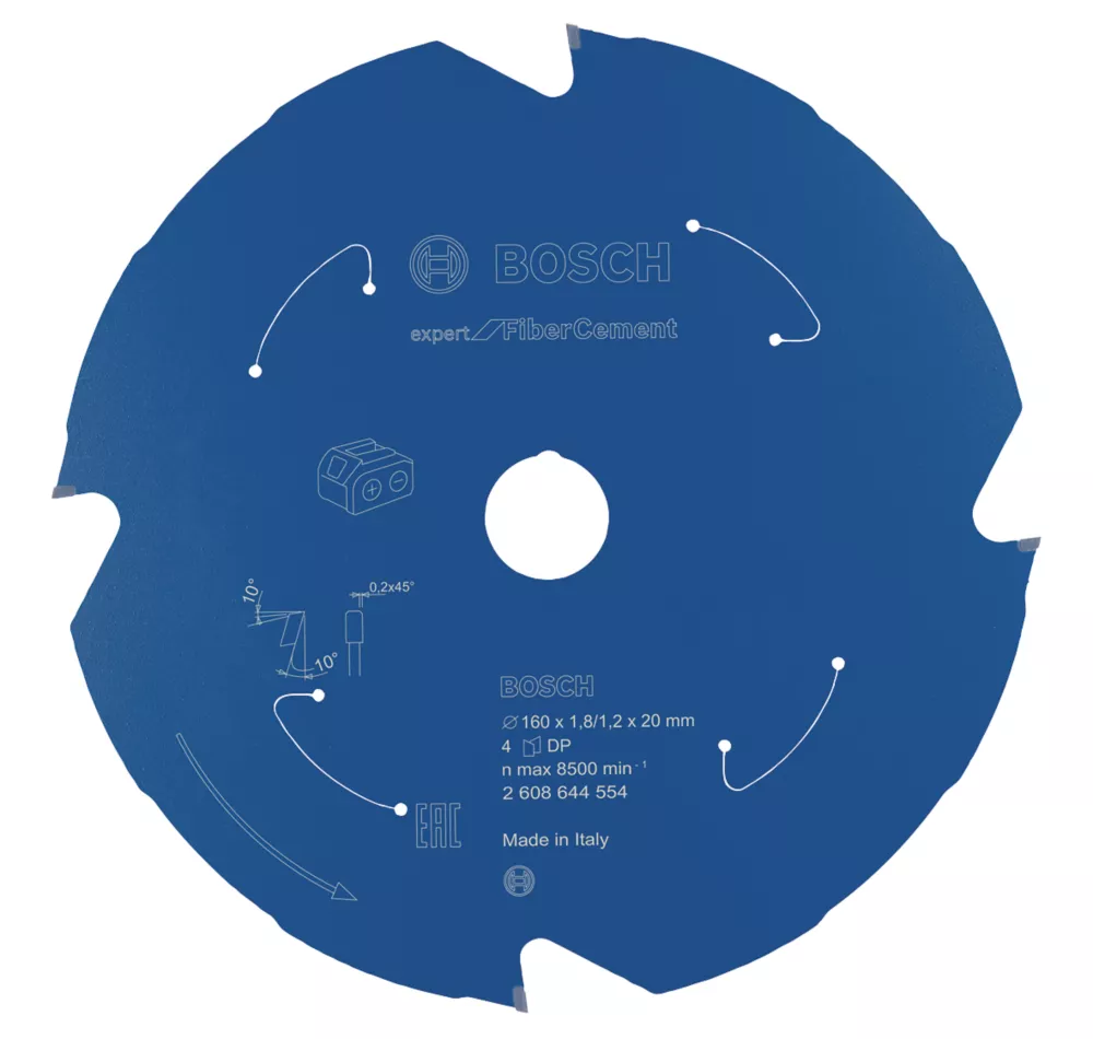 For cutting fibre cement. PCD (polycrystalline diamond) teeth and an anti-corrosive ProteQtion coating ensure an extremely long lifetime even in highly abrasive materials. Its extra-thin kerf reduces friction and material removal, consuming less power for effortlessly smooth sawing. Blade fits all common cordless mitre and sliding mitre saws.