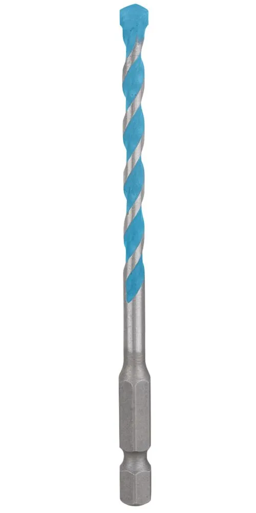 Highly versatile drill bit which can drill accurately into hard materials such as tile and granite without skidding, thanks to its sharp tip and advanced geometric design. Up to 5x more precise than a standard drill bit. Made from optimised carbide using fine-grinding manufacturing techniques. Can be used in impact mode on concrete and stone and on rotary setting for brick, tile, sheet metal, wood and plastic. Hex shank for maximum power transfer in standard 3-jaw drills and hexagonal screwdriver chucks.