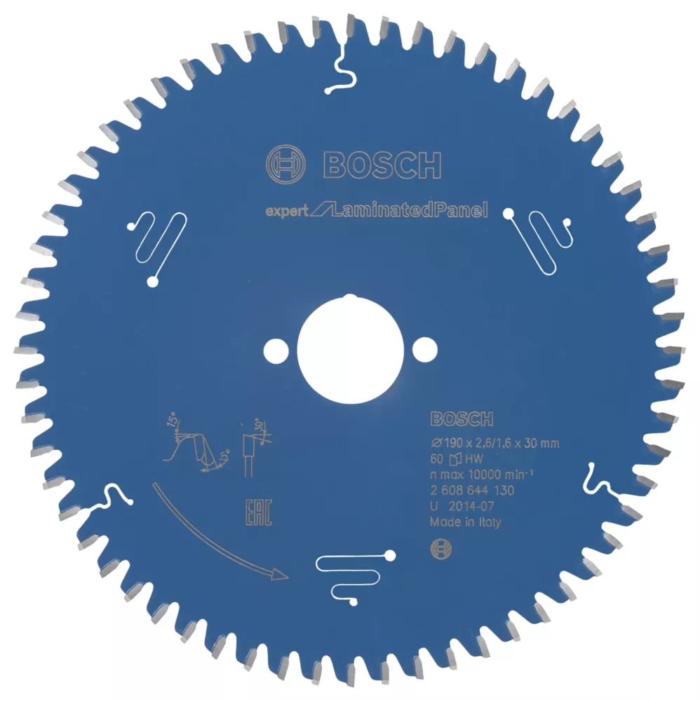 Hand circular saw blade for cutting veneered laminate, chipboard and panel materials. Blades combination of especially hard carbide and an ATB (Alternate Top Bevel) shape leaves smooth surfaces that require little to no sanding while maintaining the blade for a long lifetime. A ProteQtion coating prevents corrosion and delivers reliable cutting while reducing friction. Features anti-vibration slots for particularly smooth cutting, considerably less noise and significantly reduced vibration. Compatible with plunge and hand-held saws.