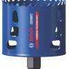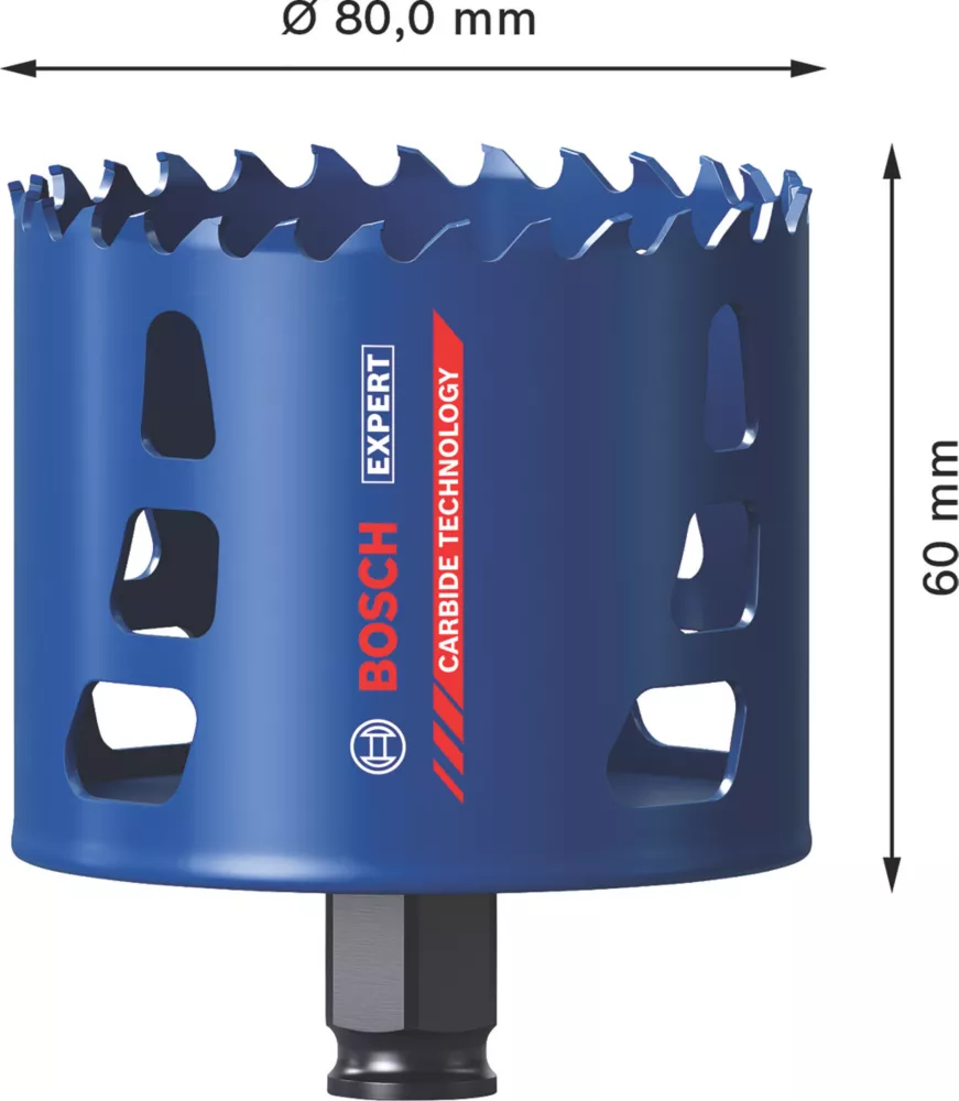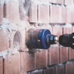 Made with Bosch Carbide Technology, each tooth is an optimum grade of the hardest metal, laser-welded and ground 6 times for the perfect cutting shape. Lasts up to 50x longer than a bi-metal holesaw in tough materials. Ideal for tough jobs and all-round trades work. Suitable for tubing for electrician’s wires, plumber’s fresh and waste water pipes, holes for sockets, light switches and junction boxes. For use with the Bosch Power Change Plus keyless arbor with 105mm pilot drill bit. Replacement pilot drill bit (Code 139PF) for use with brick and soft tiles. (Code 155PF) for use with wood, drywall, plastics and metal.