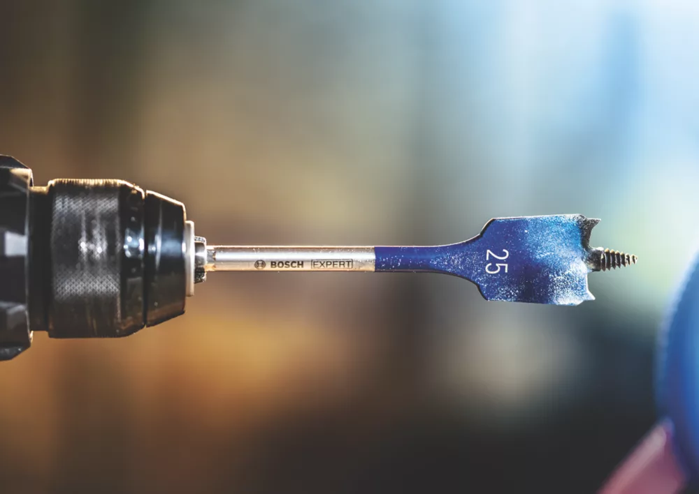 Up to 3x faster than a standard drill bit. Threaded tip draws the spade bit into wood with only the lightest pressure from the user. Paddle design ensures extra speed. Suitable for softwoods, chipboard or particleboard. Hex shank for maximum power transfer in standard 3-jaw drills and hexagonal screwdriver chucks.