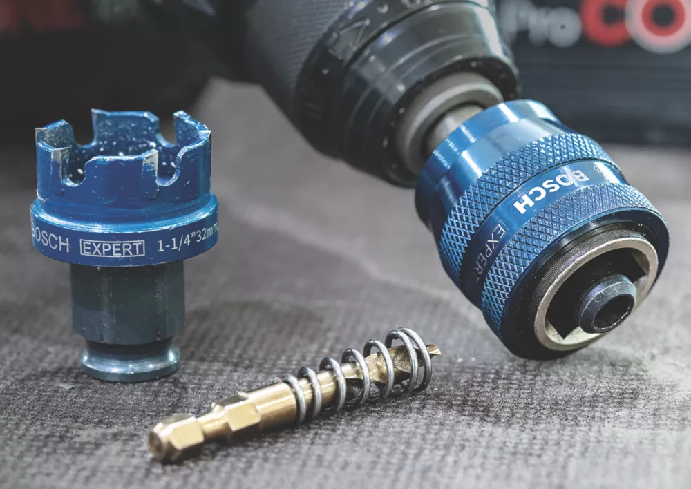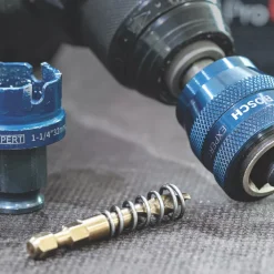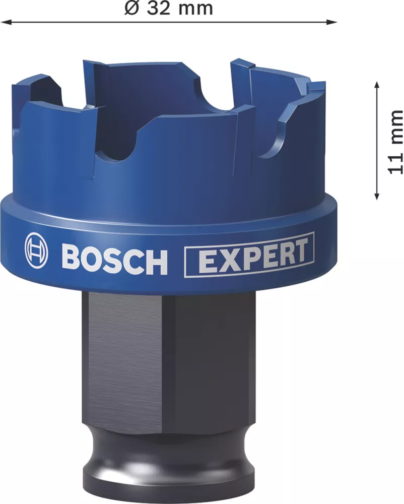 Made from a single cylinder of turned metal for ultimate stability, robustness and accuracy. Extreme durability and the ability to cut the hardest grades of steel comes from carbide teeth which are individually sharpened and brazed onto the body. Lasts up to 50x longer than bi-metal holesaws in tough materials. For use with the Bosch Power Change Plus keyless arbor.