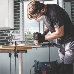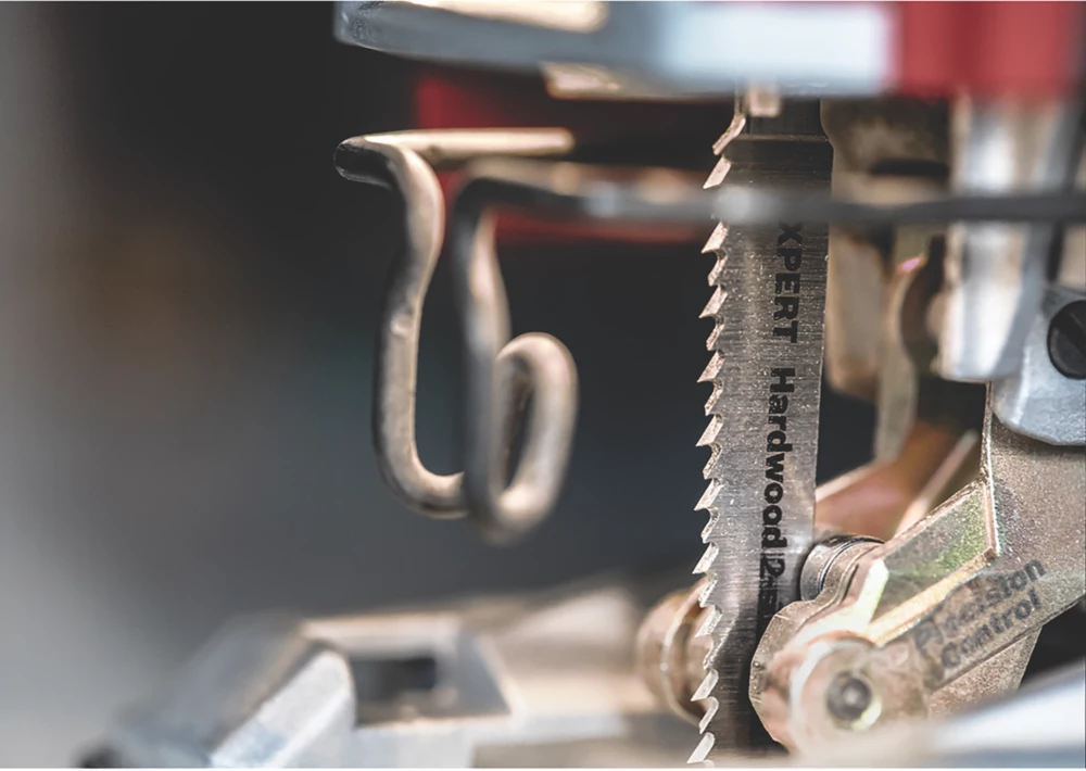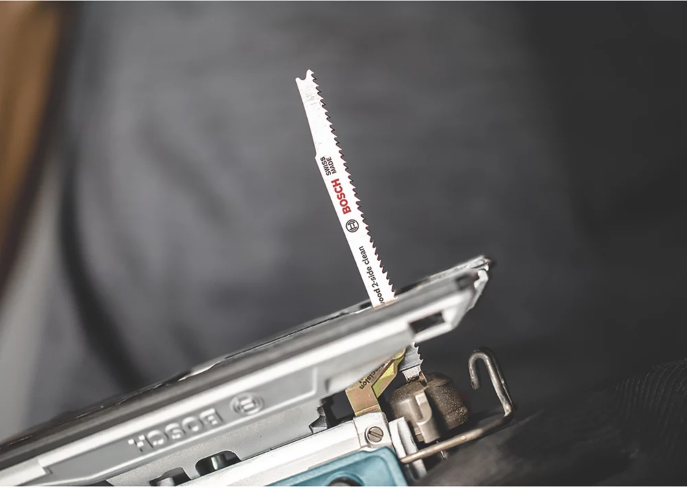 Offers a tear-free cut on both sides with counter-directed teeth. Made from a bi-metal strip of high-speed steel bonded onto a flexible steel blade giving strength and flexibility. Robust enough to cut laminated chipboard kitchen tops or hardwood. Ideal for tear-free straight cuts.
