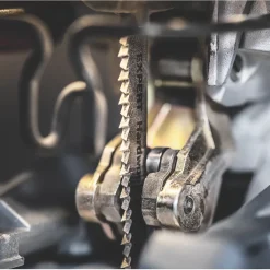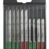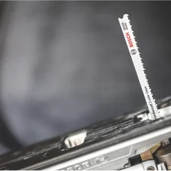 Offers a tear-free cut on both sides with counter-directed teeth. Made from a bi-metal strip of high-speed steel bonded onto a flexible steel blade giving strength and flexibility. Robust enough to cut laminated chipboard kitchen tops or hardwood. Ideal for accurate angle tear-free cuts.