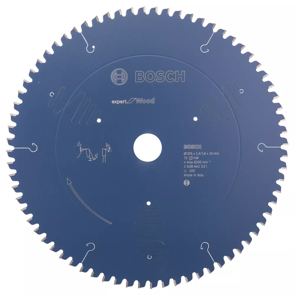 Long-life blade with high cutting performance in wood. Extra-hard MicroteQ teeth manufactured from extremely strong, high-density carbide grains for durability, combined with a robust ATB (Alternate Top Bevel) tooth shape. ProteQtion coating prevents corrosion and reduces friction. Features anti-vibration slots for smooth cutting, considerably less noise and significantly reduced vibration. Compatible with mitre saws.