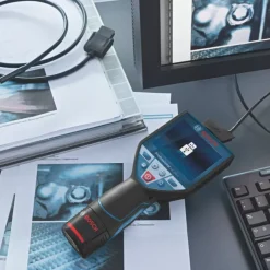 Professional inspection camera designed for inspecting and documenting hard to reach areas. Features a large 3½” display for a comprehensive view. “Up is Up” function automatically rotates the image to the correct position, ensuring optimum orientation at all times. Pictures and video can be saved on micro SD card and transferred via micro USB for easy documentation. 1.2m long camera cable with narrow 8.5mm diameter camera head give easy access to difficult inspection areas. Quick connector for easy removal of the camera head and compact storage. Bright LED worklight provides illumination in dark environments. Can be powered by a rechargeable 1.5Ah Li-ion battery or 4 x AA batteries. Supplied with L-Boxx for safe storage.