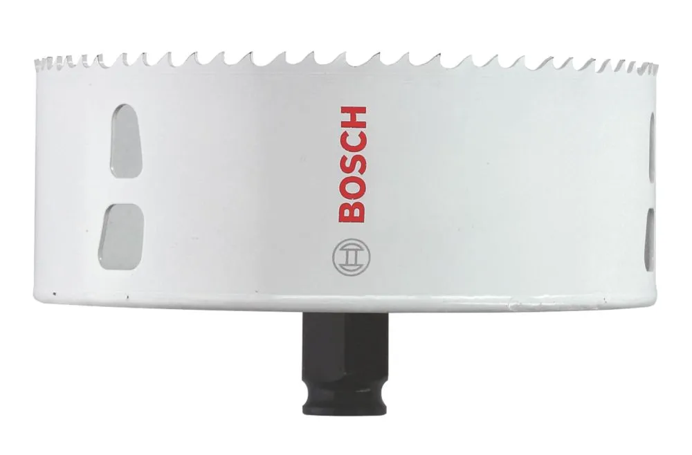 Power-change holesaw and adaptor for a fast and safe attachment and release of the pilot drill bit and holesaw, with just one click. Progressive tooth strip provides optimal cutting performance and fast chip clearance. HSS bi-metal with 8% cobalt alloy, enlarged HSS stripe and redesigned teeth ensures extreme durability.