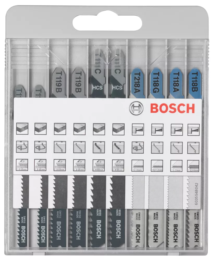 Blades compatible with jigsaws with a single lug shank system. Delivers cuts in wood and metal. Contains blades for straight and curve cuts in soft wood, and for reliable results in metal and metal pipes.