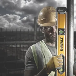 24″ (610mm). Aluminium box section construction. Professional quality with machined levelling faces and solid block vials. Built to last with solid construction and die-cast centre vial.
