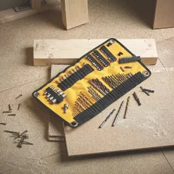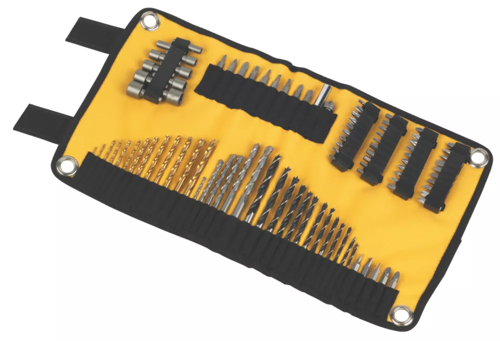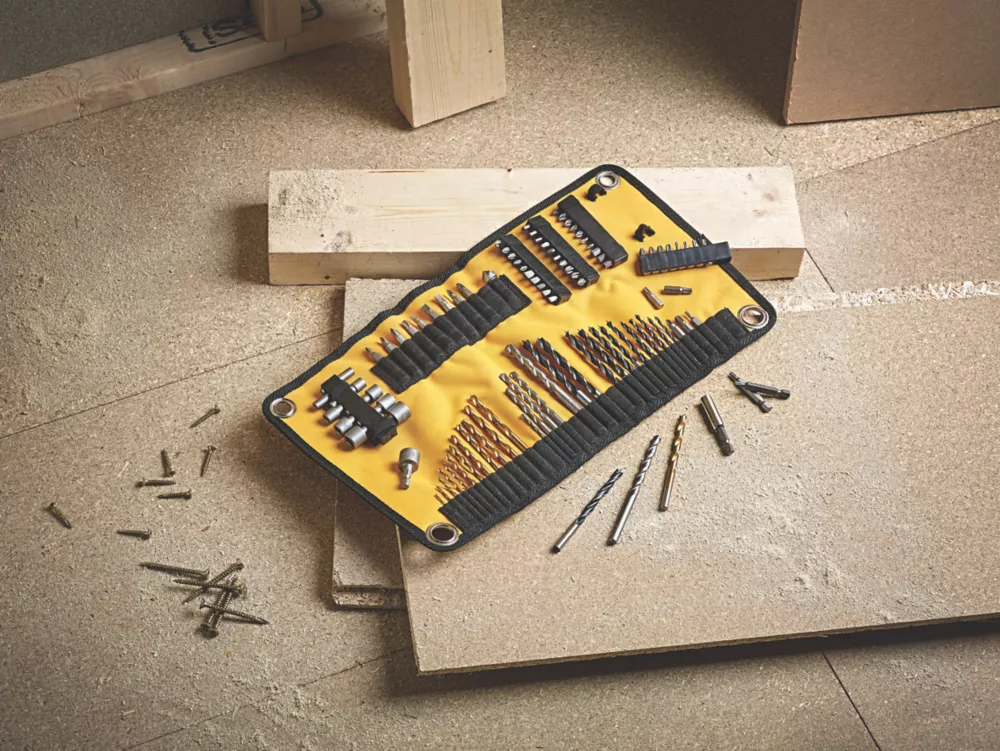 Comprehensive combination set including wood, metal and masonry bits. Supplied in a portable roll mat for easy storage and transportation.