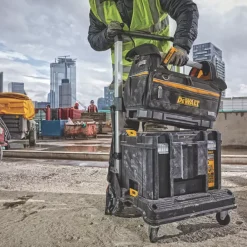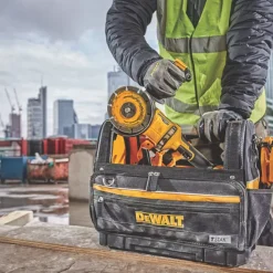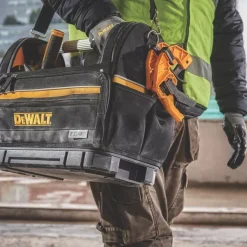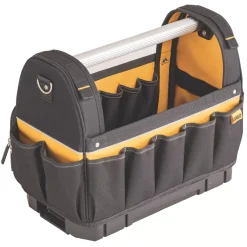 Fabric TSTAK tool tote for easy organisation of tools. Mixed denier fabric for durability and long life. Plastic base protects tote and its contents when placed on a wet or dirty floor. Padded shoulder strap and aluminium carry handle for comfort when carrying heavy loads. Connects to the TSTAK modular storage system. Load capacity of 30kg.
