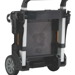 Telescopic, durable aluminum trolley. Features front castor and back wheels for manoeuvrability. Foldable for easy storage.