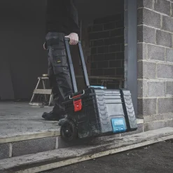 Easily take hand tools, power tools and tool accessories around the site or around the house. This spacious tool box features an integrated tool bar so preferred tools are easily in reach. Supplied with rubber-coated wheels, metal telescopic handle and metal stacking latches. Connecx system enables connection to other products in the range, including crates and organisers.