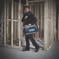Built to withstand tough working environments, the Erbauer ConnecX Tote is designed for professional trade use. Extra-large storage capacity and high weight loading allows for the safe transportation and storage of tools. Stackable design enables secure connection on top of the Erbauer ConnecX Tools Storage System for customisation. Features durable 1200 denier material and waterproof base to protect tools.