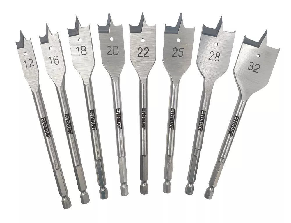 Erbauer Flat Wood Bit Set 8 Pieces