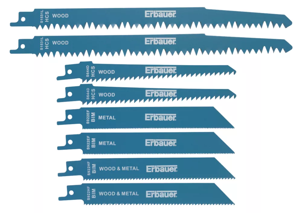Universal fitting, assorted blades ideal for cutting wood, plastic and metal.