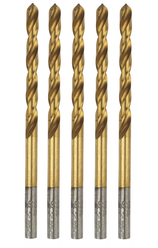 Industrial quality drill bits for metal. Manufactured from high quality, high speed steel and hardened for superb strength. Fully ground for fast waste removal. TiN coated for even longer life. 135° split tip for accuracy.