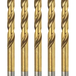Industrial quality drill bits for metal. Manufactured from high quality, high speed steel and hardened for superb strength. Fully ground for fast waste removal. TiN coated for even longer life. 135° split tip for accuracy.
