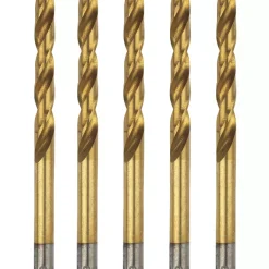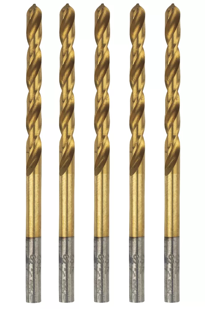 Industrial quality drill bits for metal. Manufactured from high quality, high speed steel and hardened for superb strength. Fully ground for fast waste removal. TiN coated for even longer life. 135° split tip for accuracy.