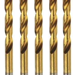 Industrial quality drill bits for metal. Manufactured from high quality, high speed steel and hardened for superb strength. Fully ground for fast waste removal. TiN coated for even longer life. 135° split tip for accuracy.
