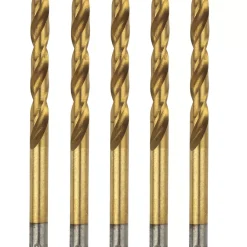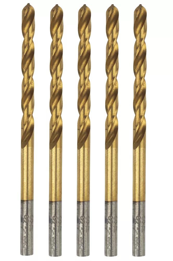 Industrial quality drill bits for metal. Manufactured from high quality, high speed steel and hardened for superb strength. Fully ground for fast waste removal. TiN coated for even longer life. 135° split tip for accuracy.