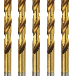 Industrial quality drill bits for metal. Manufactured from high quality, high speed steel and hardened for superb strength. Fully ground for fast waste removal. TiN coated for even longer life. 135° split tip for accuracy.