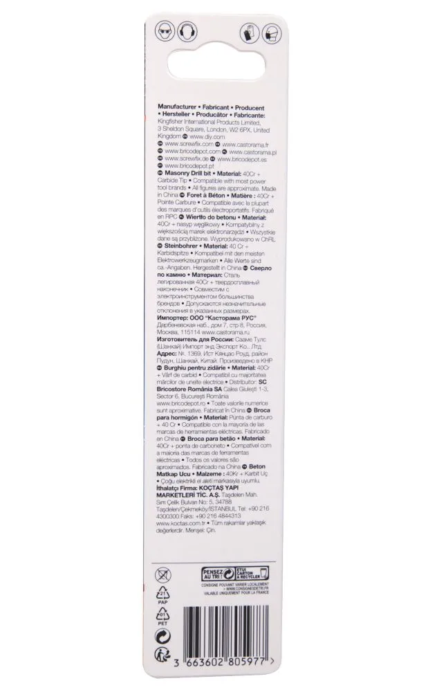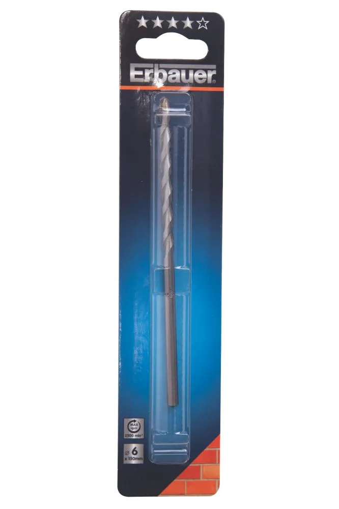 Chisel-shaped tungsten carbide tip for easy drilling into concrete and stone. Sandblasted to ensure wear resistance.