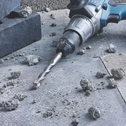 Chisel-shaped tungsten carbide tip for easy drilling into concrete and stone. Sandblasted to ensure wear resistance.