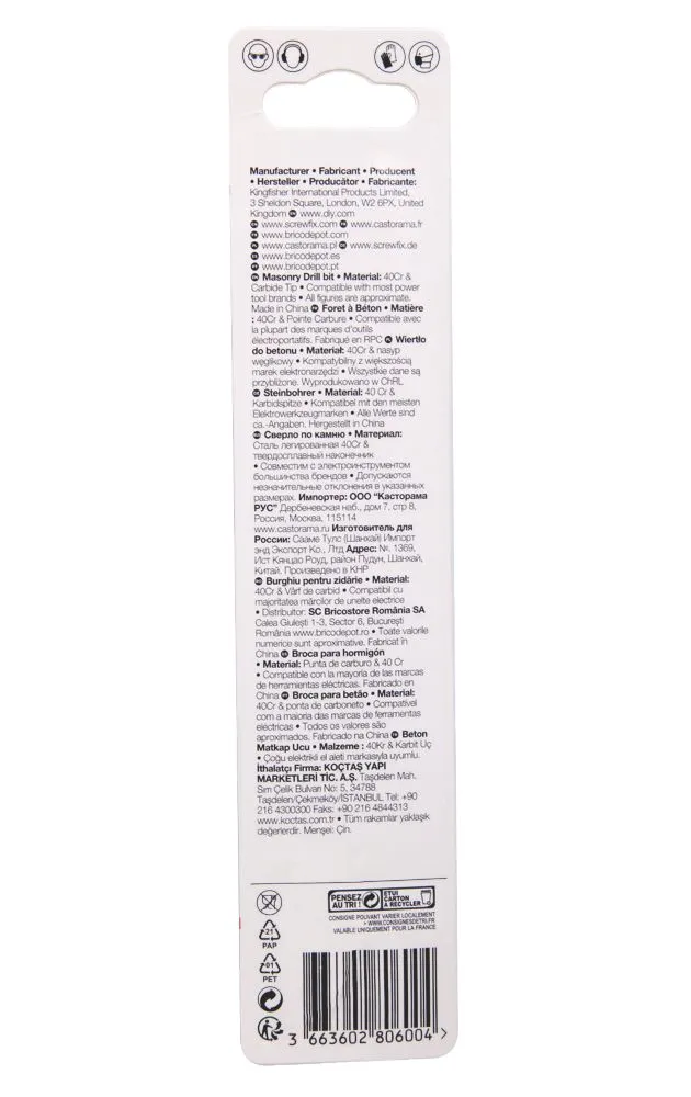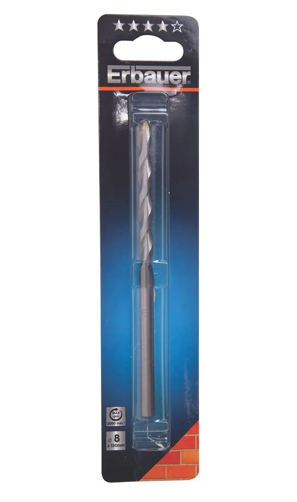 Chisel-shaped tungsten carbide tip for easy drilling into concrete and stone. Sandblasted to ensure wear resistance.
