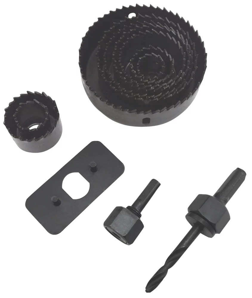 Includes 9 carbon steel alternate-teeth holesaws to suit the most popular downlight sizes. Suitable for wood and plastic.