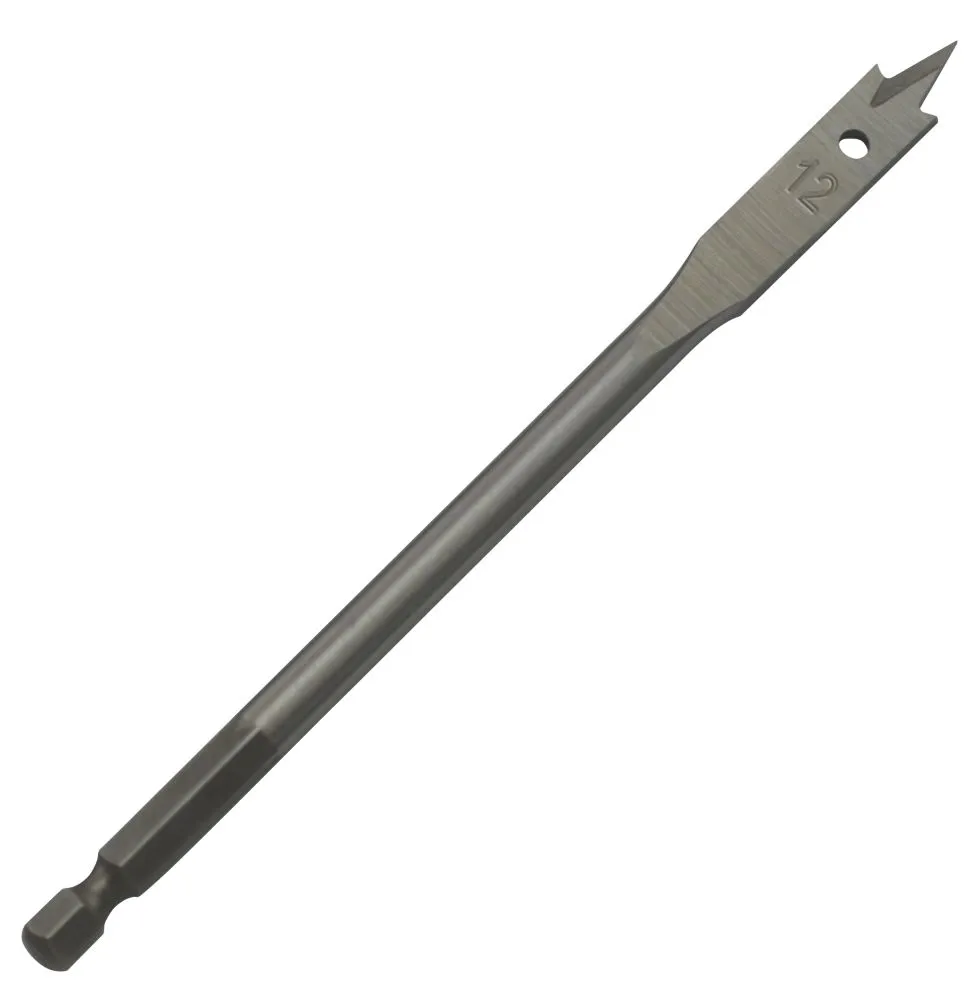 ΒΌ” Hex Shank. Good quality flat bits. 3-point cutting head for clean, large diameter drilling in wood. Angled cutting edges give faster, cleaner cutting. Use with hand or power tools.