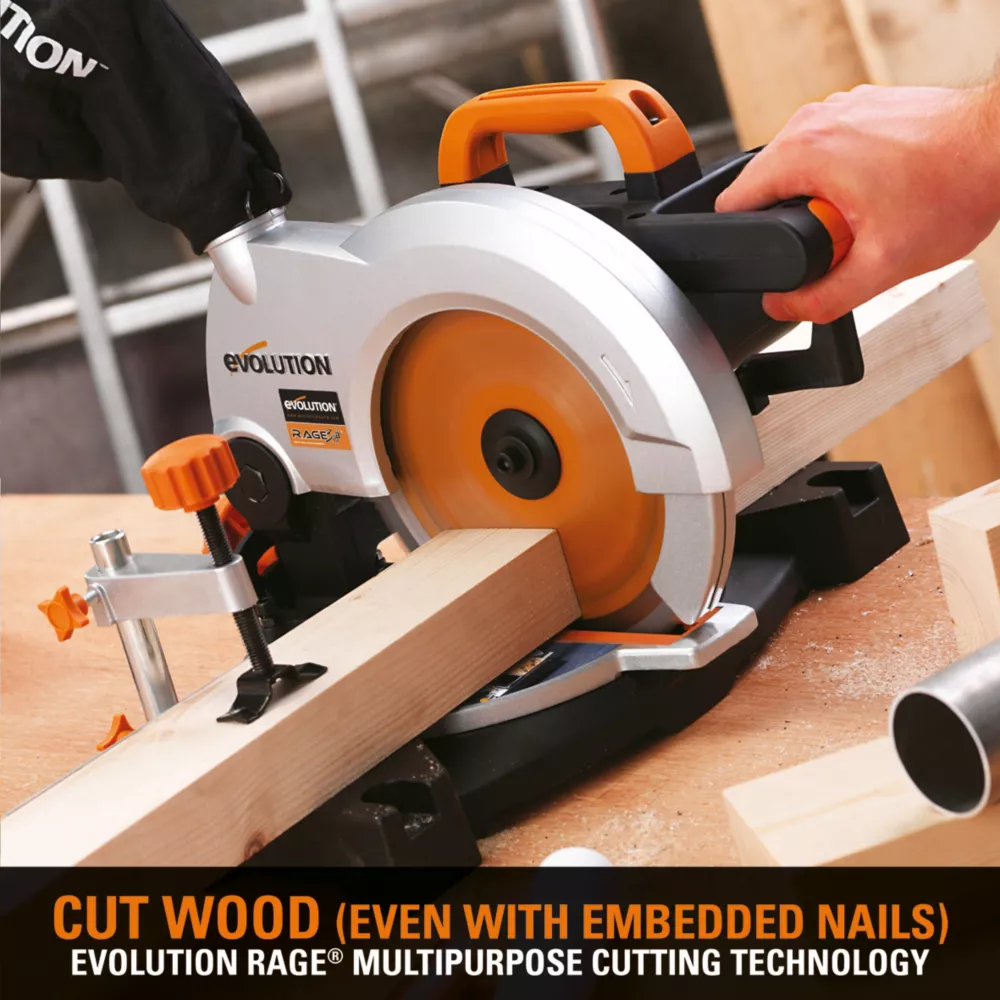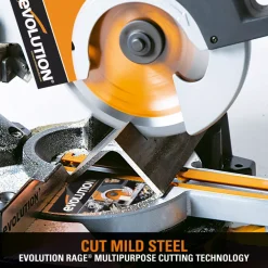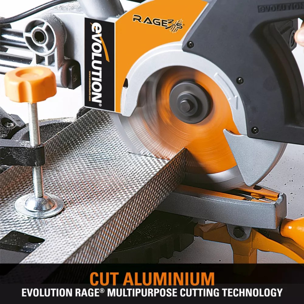 Cost-effective blade featuring RAGE technology. For cutting steel, aluminium, wood and plastic. Cuts nail-embedded wood easily and cuts steel with virtually no sparks or heat. Collects most wood and metal chippings automatically. Only suitable for use with Evolution circular and mitre saws.