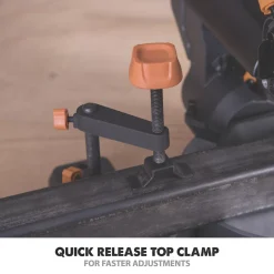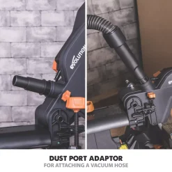 Perfect addition to the R210SMS Multi-Material Mitre Saw. Includes a front clamp for additional accuracy and a quick-release top clamp for faster adjustments, along with an Evolution dust bag for a cleaner working environment. Also included is a 36mm dust port adapter for attaching a vacuum hose.