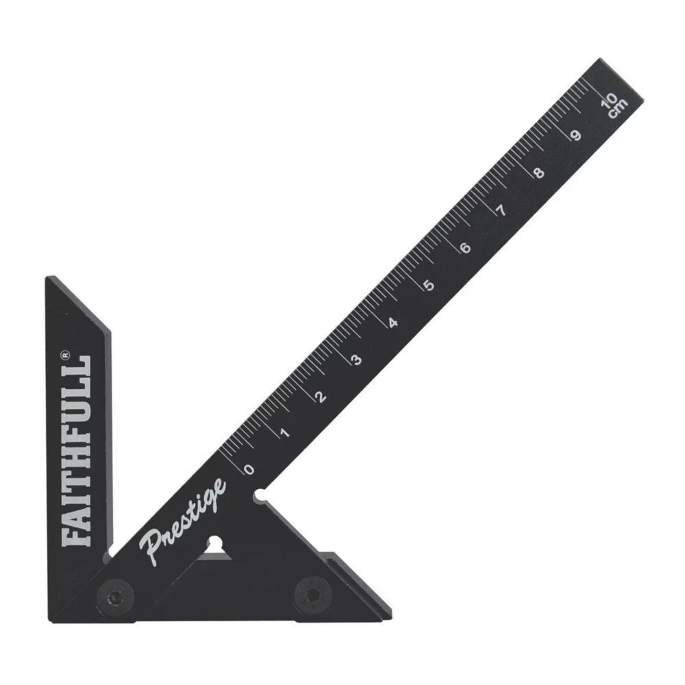 For finding the centre point of a square or cylindrical object. Laser-engraved scales offer outstanding measurement accuracy with ruled markings in mm increments and a measuring capacity of 90mm. Can be used on objects with a diameter or width of up to 180mm. Can also be used for 45 and 90° mitre cut lines, ideal for an engineering workshop. Black aluminium with anodised finish for corrosion protection. Supplied in EVA foam tool storage tray.