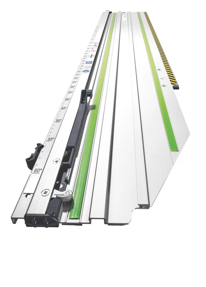 Makes work easier with fast, guided and precisely-angled cross cuts. Stop-system for accurate repeated angled cuts. Retract function returns the saw to start position after sawing. Adhesive cushion strip protects the workpiece surface from being damaged. Slideway lining for easy movement of the machine on the trimming rails.