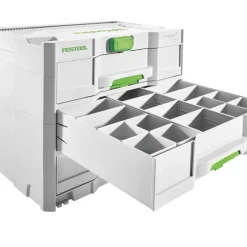 Ideal for organising storage of accessories, consumables and small parts. With 3 large, flexible and individually divisible drawers, each with a capacity of 6.7Ltr for simpler, more convenient transport in a Systainer system. Space for 2 inscription labels per drawer for maximum organisation. Can be combined with another to form a flexible rack system in the workshop. Compatible and connectable to all Systainer generations.