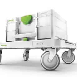 All 4 large wheels can be rotated by 360°, making it agile and ideal for construction sites and workshops. Features coupling allowing Systainer³ and Systainer T-LOC units to be secured in place with the central control element. Other objects and materials can also be easily transported on the flat surface and secured using the strap feedthroughs. 4 robust handles make it easier to manoeuvre and position.
