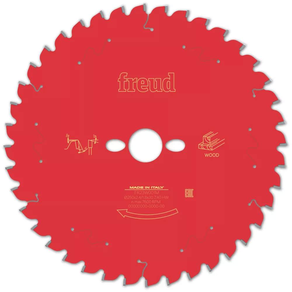 Mitre saw blade with Titanium Cobalt Carbide (TiCo) for a sharper edge, flawless finish and longer cutting life. Suitable for cutting hardwood, softwood, plywood, chipboard and MDF. Features anti-vibration slots for smooth running and minimised noise, tri-metal shock-resistant brazing alloy to withstand extreme impact and premium steel body for precision and endurance. Non-stick coating of Perma-Shield provides thermal insulation, protects from corrosion and eliminates resin build-up, reducing downtime for cleaning. Offers high blade stability and accuracy from special rolled-in tension ring and expansion slots. Laser-marking on each blade shows relevant applications for easy and immediate identification.