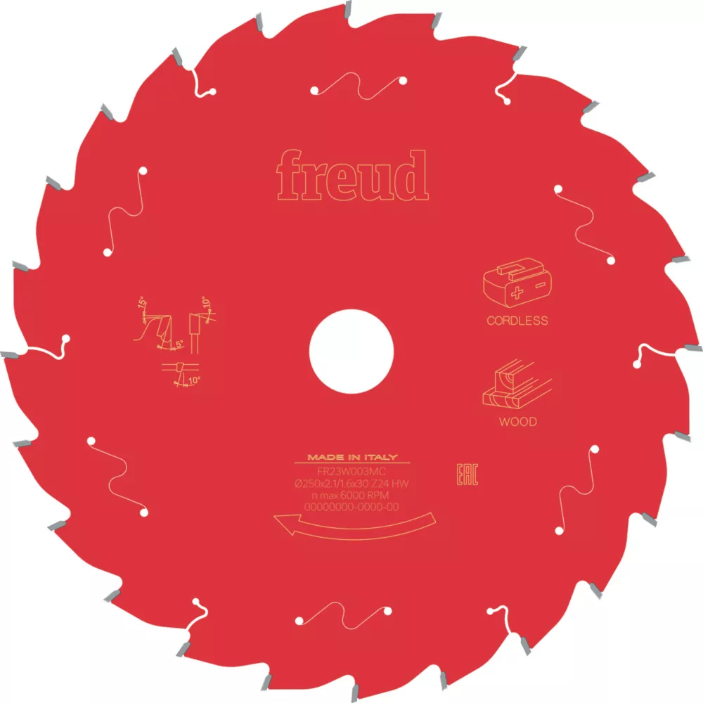 Offers maximised battery run time due to special thin-kerf tooth design. Made for mitre saws, ideal for cutting hardwood, softwood, plywood, chipboard and MDF. A specially formulated, highly compact Titanium Cobalt Carbide (TiCo), engineered and manufactured by Freud, provides a sharper edge and flawless finish with a dramatically longer cutting life. High blade stability and accuracy comes from special rolled-in tension ring and expansion slots and specially designed anti-vibration slots enable smooth running and minimised noise. Tri-metal shock-resistant brazing alloy consists of copper wrapped between silver layers to withstand extreme impact. Application material laser-marked on blade for easy and immediate identification.