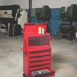 Mechanic’s tool chest and cabinet combination, with super-smooth ball bearing slides. Features swivel castor wheels for improved mobility.