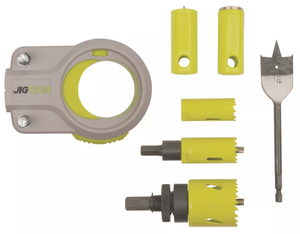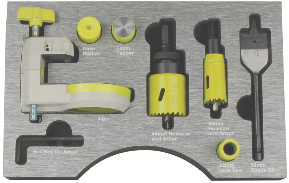 Can be used on door thicknesses between 32 and 54mm with the guided clamp. Backset can be changed to either 45 or 57mm for UK standard tubular latches. Latch bore can accommodate traditional latches with a 22mm hole and Jigtech latches with a 25mm hole.