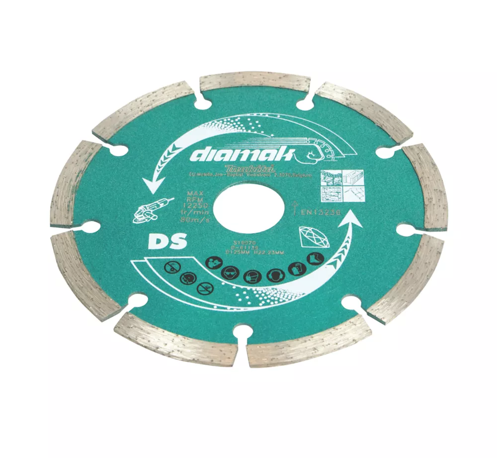 General purpose blade for use on concrete materials including slabs, bricks, block sandstone, slate and limestone. Can be used wet or dry.