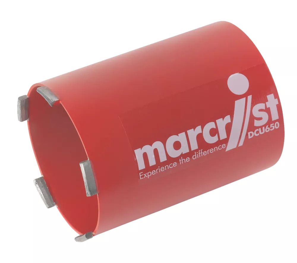 Professional core bit for drilling a variety of construction materials. Extremely fast cutting speed, long operational life. Rooftop segment for easy and quiet start. Dynamically-balanced unslotted barrel for low vibration. Can be used with or without dust extraction unit.