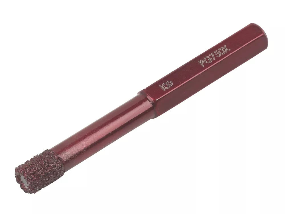 Drills 30-70 holes in grade 5 porcelain tiles. Self-cooling and self-sharpening. Optimum speed 2000-3000rpm.