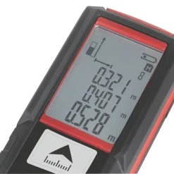 Designed to provide the easiest measurements from all orientations. A backlit screen offers maximum visibility in low light conditions. The large 3-line LCD display displays metric units of measurement which provide the user with area/volume/indirect height and surface measurements as required. Additional features include memory recall for the last 20 measurements as well as Min/Max sweep and continuous tracking. A fold-out end piece allows the user to conduct corner measurements if required. Ultra-slim housing and a belt clip allows for easy transportation. Distance addition and subtraction for layouting. Easy to use one-person point and shoot system.