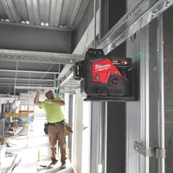 Cross-line laser with high intensity green beam for uncompromised visibility. Operates with a working range of 36m, but this can be increased to 50m when used with a receiver (sold separately). M12 battery provides over 10 hours of constant runtime on a single charge. Faster control and alignment ensured with a micro pivot on a plane intersection. An integrated 330° rotation enables versatile positioning, even when mounted. Amplified magnets ensure trusted hold in application. Compatible with the M12 tool range.