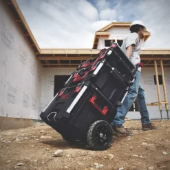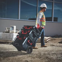 Includes trolley box, large box and box. Constructed from impact-resistant polymer and IP65 rated seals to prevent damage. Multi-footprint modular storage system. Allows stacking of lock boxes, organisers and totes in any configuration.